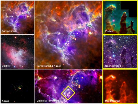 다른 망원경으로 촬영한 창조의 기둥